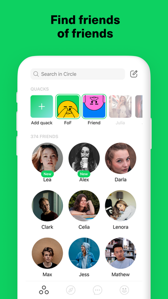 Quack - Friends Of Friends— бесплатная программа для iPhone, входящая в категорию «Социальные сети».